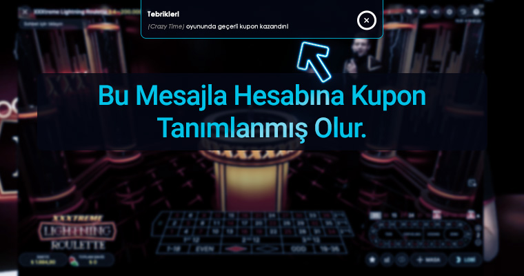 Lobideki sekmelerden "Promosyonlar"ı seçtiğinde kazandığın kuponu ve hangi canlı casino oyununda kullanabileceğini göreceksin.